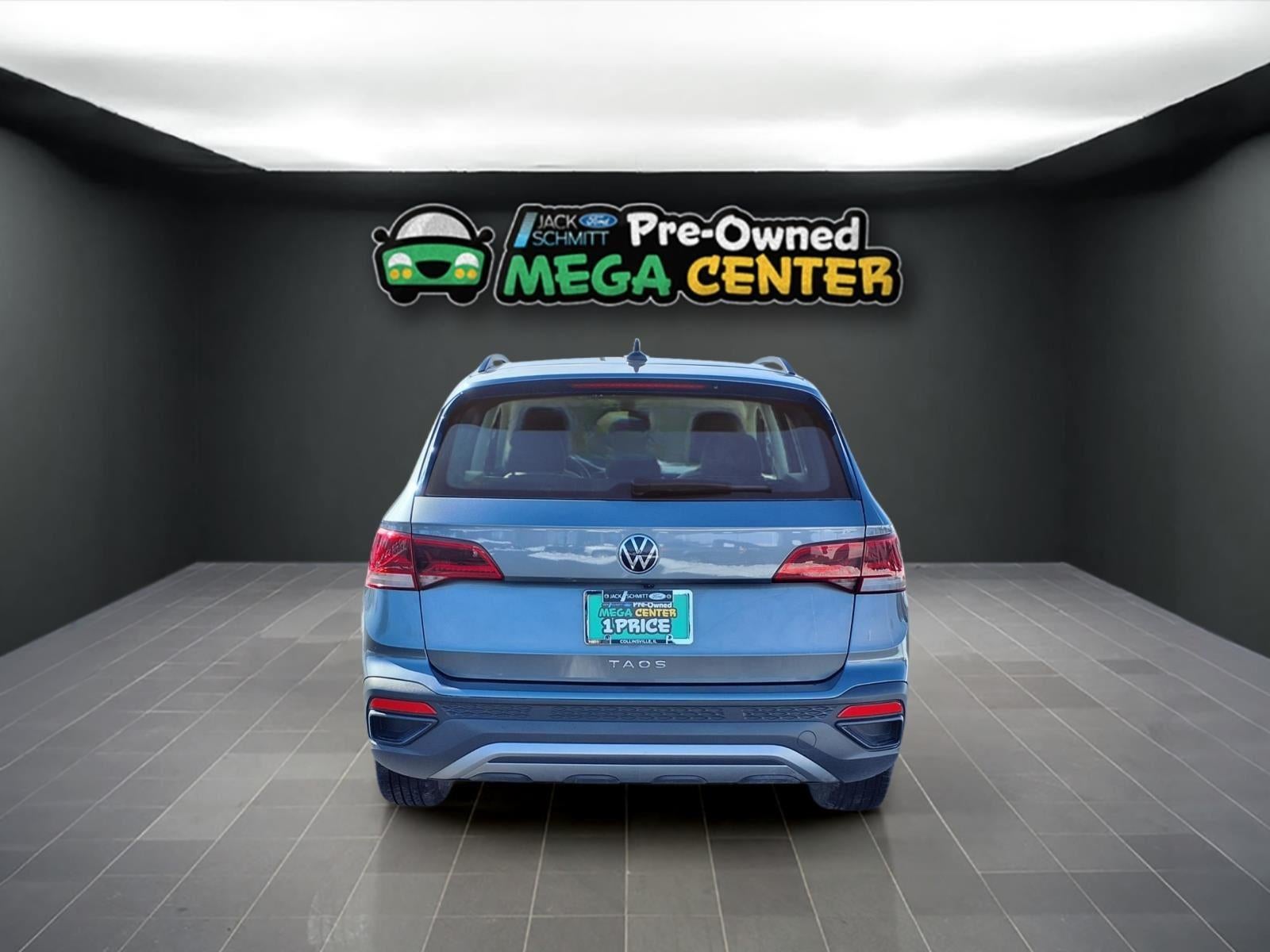 This 2024 Volkswagen Taos S, has a Dusk Blue Metallic exterior and Gray/Black interior color with only 53,187 miles. Stock Number SP2649. You can connect with us by calling (618) 491-5561.