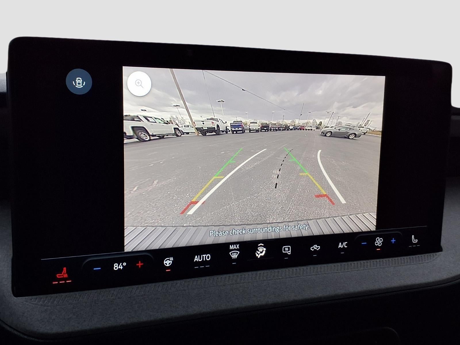 - The vehicle is equipped with a camera that displays an image of the area behind the vehicle on an interior display.